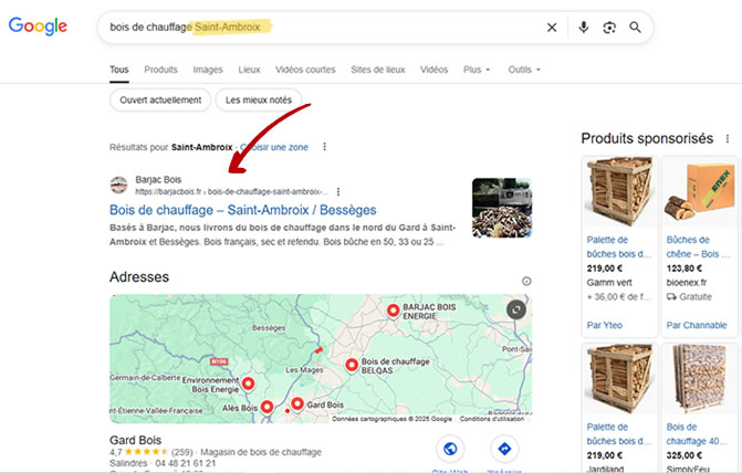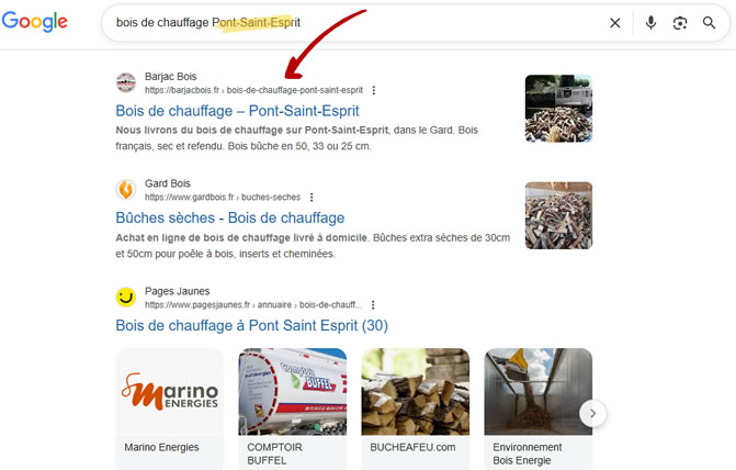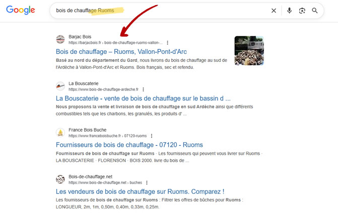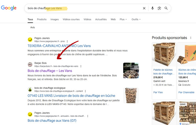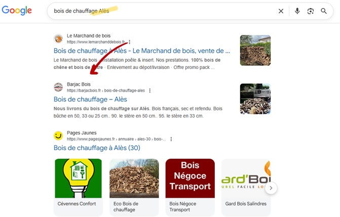 Si vous recherchez du bois de chauffage à Barjac, Google va vous proposer barjacbois.fr.